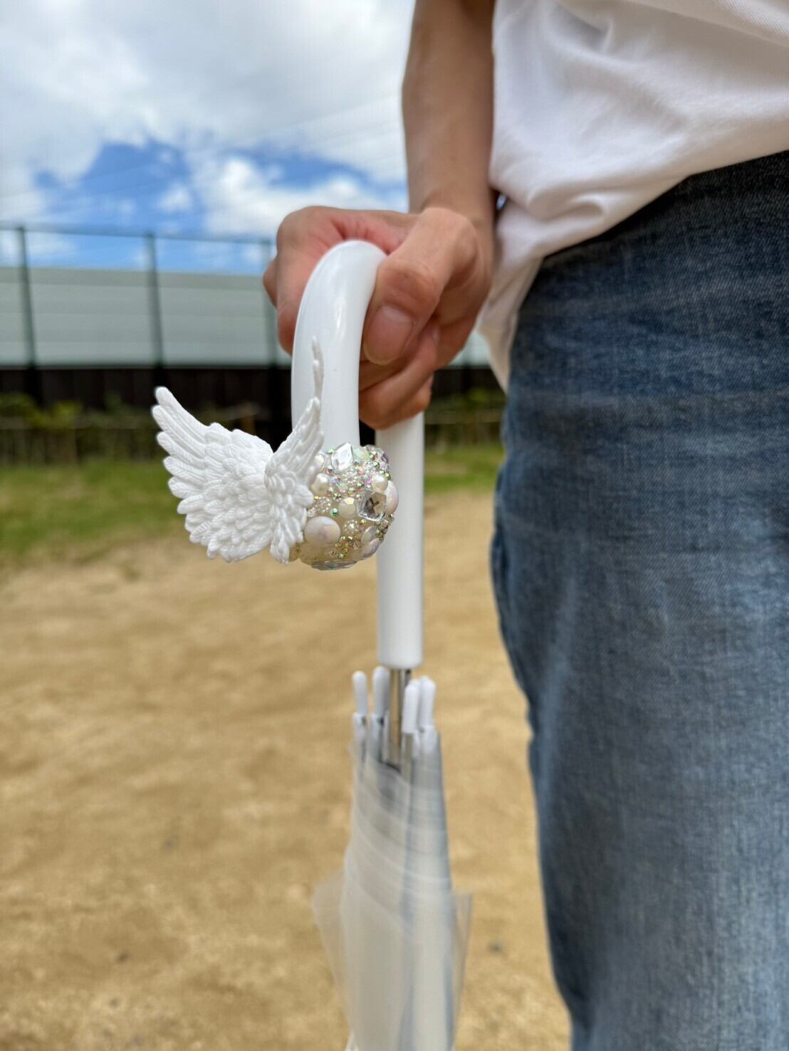 ※傘のハンドルや、傘先の太さや形によって取り付けられない場合は、デコ同様にボンドやレジンでお願いします。